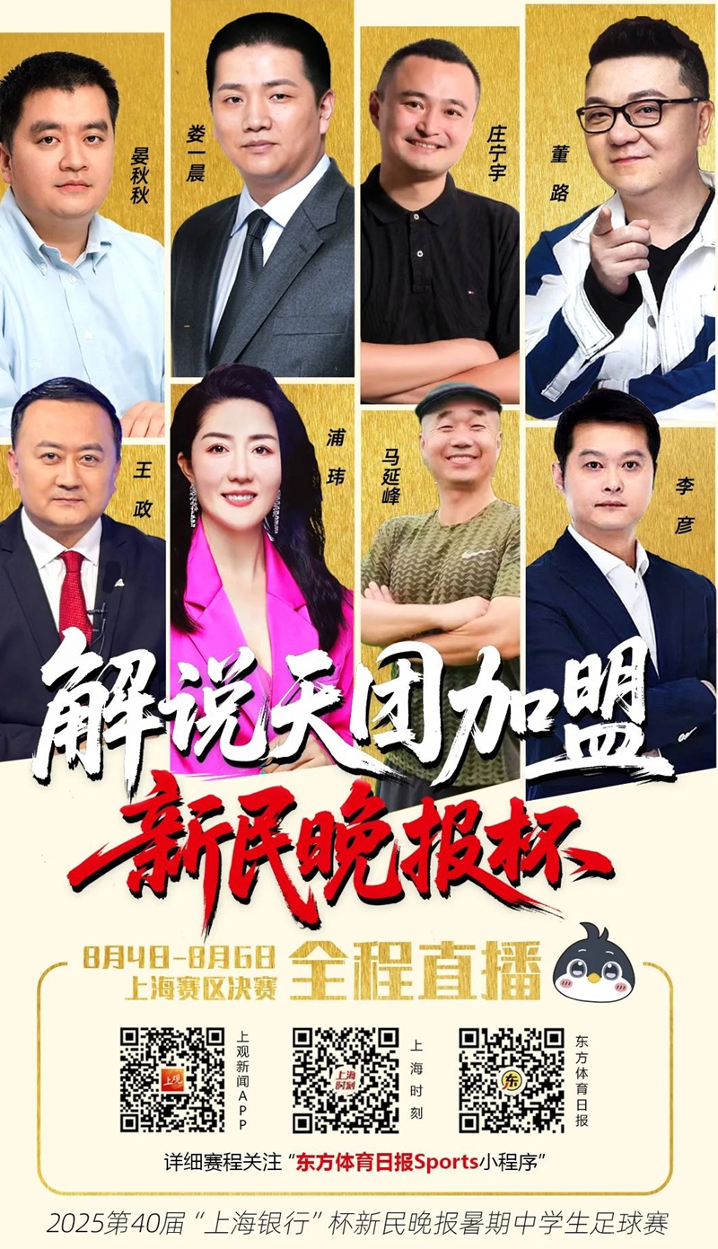 请名嘴来助阵,是今年的新民晚报杯暑期中学生足球赛的一大创新和亮点。从市级总决赛32强的比赛开始,每轮都会随机挑选一场在上观新闻APP、上海时刻视频号以及东方体育日报视频号直播,主办方也别出心裁地推出了阵容豪华强大的“解说天团”。除了之前的庄宁宇/马延锋,王政/李彦,娄一辰/张玉宁将亮相决赛日的直播间,还有名嘴董路、前女足国脚浦玮等。他们的到来,让参赛队员有了“职业球员”般的体验。